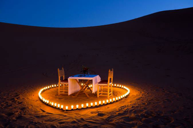 A private dinner set on top of golden dunes under a sky full of stars — pure desert magic.